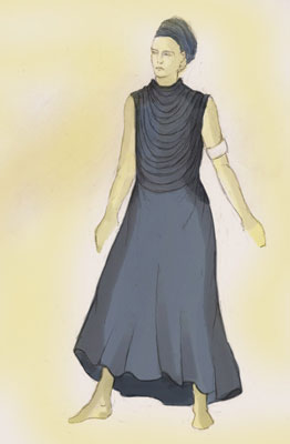 L’esprit général des costumes est celui d’une création originale s’inspirant de l’antiquité, du 18e siècle, et de la création contemporaine, suggérant le caractère sacré de la Passion, et la lecture actuelle que nous en faisons.
