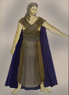Jésus est Le rebelle, seul et unique, il sera pauvrement vêtu de voilages, le corps gravé de tatouages. Cheveux longs et barbe rase, puis totalement glabre, il inspirera comme à l’époque, à la fois la crainte, la curiosité, et l’amour. Il recevra une cape (rouge différent de celle de Pilate) pour son supplice 3.