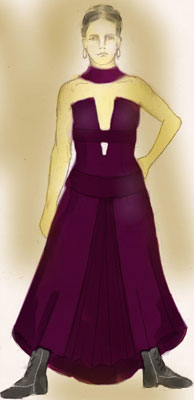 Les solistes sont les scribes, ils n’ont ni époque, ni référent. D’où leur côté décalé, à la fois très contemporain et un peu irréel ; leurs tenues très lisses en soie sauvage, leurs couleurs franches et vives (soprano / rouge, alto / mauve, ténor / noir, baryton / blanc) et leurs coiffures étranges. Pierre est habillé comme les choristes, avec des gants en sus, et Pilate est vêtu de blanc avec les gants et la cape rouge.